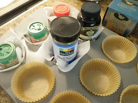 The spice jars were just holding the parchment down in the cup until I could spoon batter in each cup.